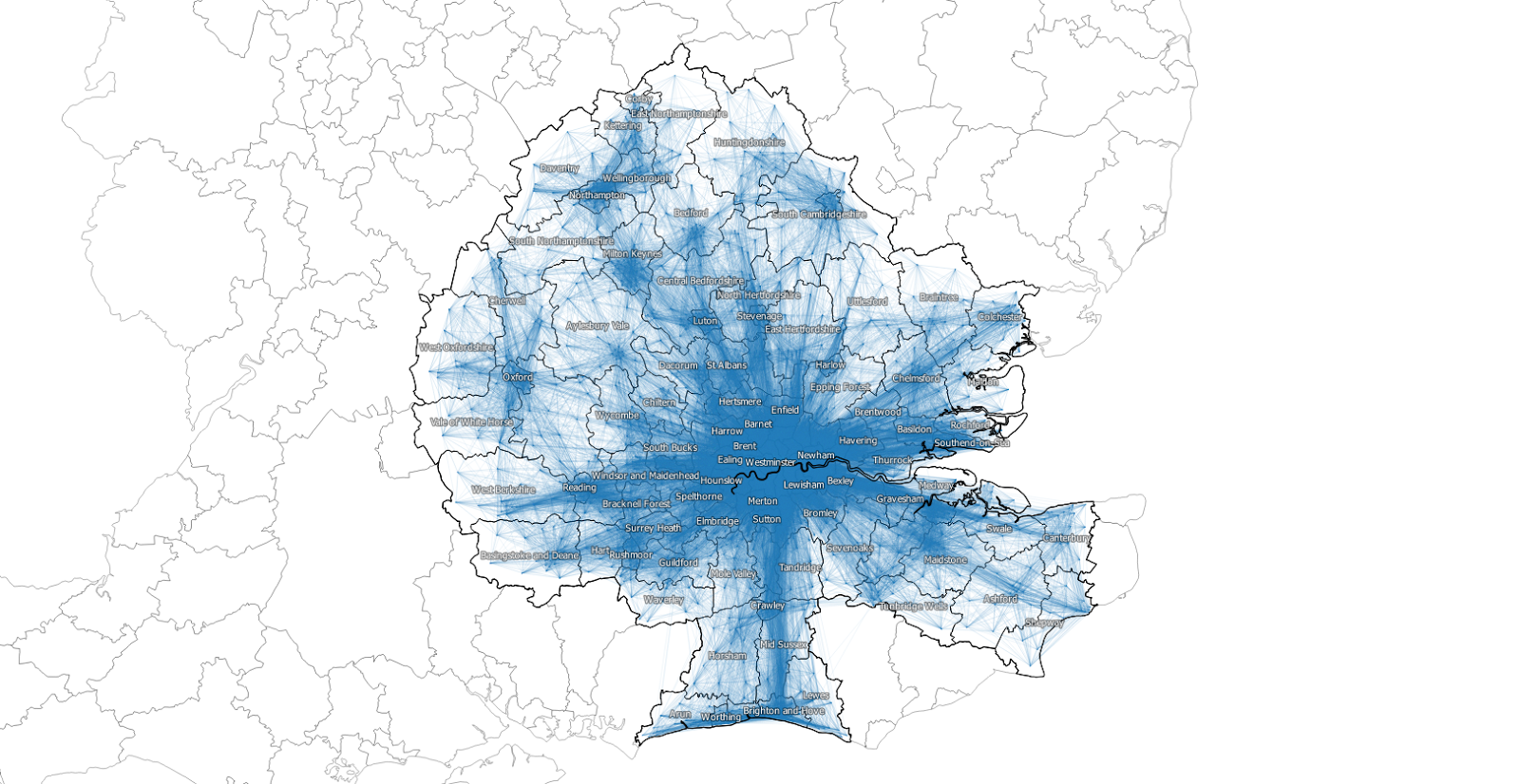 The whole area (including Greater London itself) contains 18.9 million people – more than a third of the population of England.