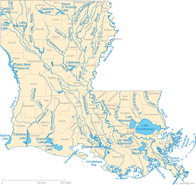 Red River and Mississippi River were parallel rivers each flowing south to the Gulf of Mexico.