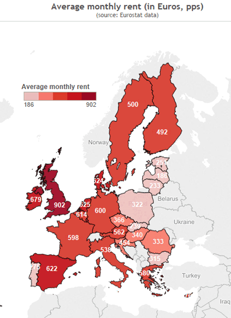 Economic mapsReal estate Average monthly rent (in Euros, pps) and average proportion of household income spent on rent payments (%) June 24, 2015 Alex Related Posts:The Highest Paying Programming Languages in the U.S.Household Income in the United States MappedHow Much Cheaper It Is To Rent Than Buy A Home In…In A High-Rent World, Affordable And Safe Housing Is…The Most Affordable ZIP Codes to Buy Property in…Contactless Card Limits in Every CountryThe Opportunity Atlas: Mapping the American DreamGlobal map showing the ownership vs rental split rate