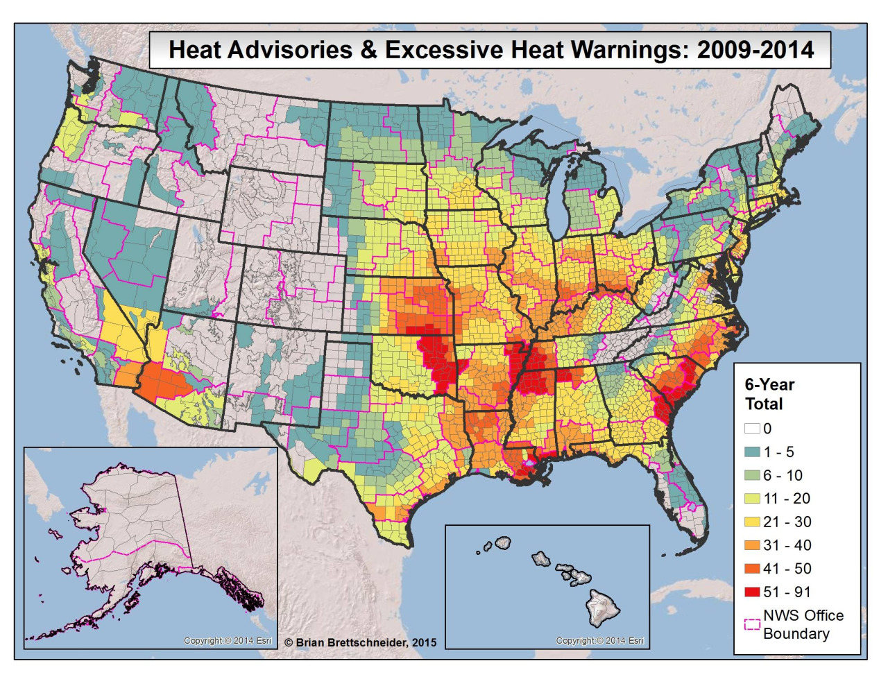 Climate Heat advisories and excessive heat warnings (2009-2014) August 1, 2015 Alex Related Posts:World Maps Reveal: How Countries See Global Travel RisksExploring America’s Drinking HabitsOil Consumption in Europe: Olive oil vs Butter vs…Exploring Sugar Consumption in the United States: A…The Best World Atlases in 2025Heat Wave Days by US Contiguous CountyThe Best Editions of Monopoly Board GameExotic Animal Laws by U.S. State Mapped