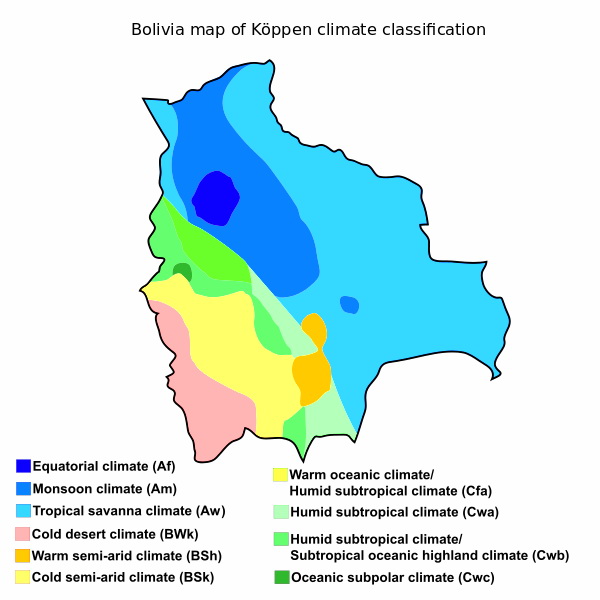 CitiesClimate Bolivia map of Köppen climate classification May 2, 2016 Alex Related Posts:How is climate will change in the U.S. (2030 - 2100)?Climate classification systemsPercentage who have not Consumed Alcohol in the last…The 100th Meridian has shifted 140 miles east since 1980Detailed Climate Map Of The United StatesHuman Climate Niche MappedHow the World was Imagined: First Maps and AtlasesWhich country has the most palm species?