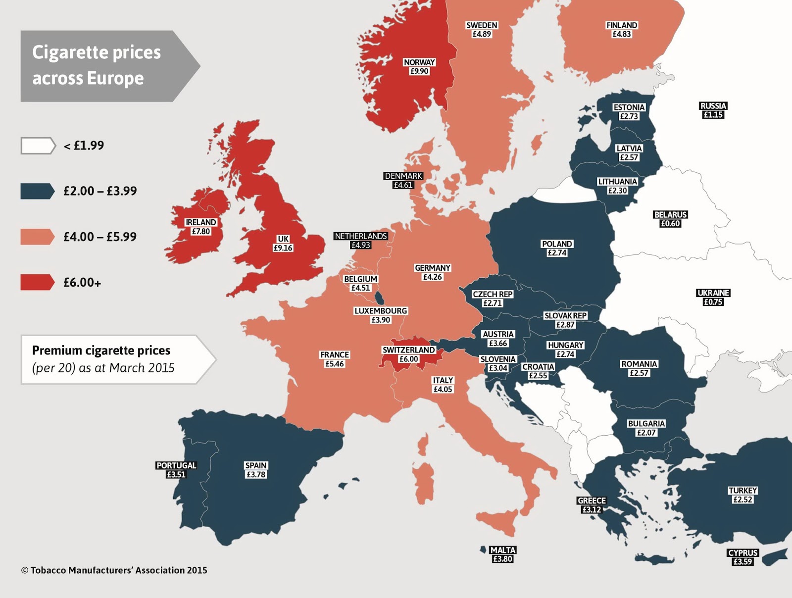 Economic mapsMapping Health Cigarette prices across Europe (in British Pounds) September 20, 2015 Alex Related Posts:Drowning in Cigarette Butts: Visualizing the World's…Kilograms to Pounds Converter: Weight Units (g, oz,…How Many Cigarettes You’re Indirectly Smoking Due to…Smoking Rates in the U.S. and CanadaCigarette ConsumptionMapping America's Journey Away from TobaccoHow Global Housing Prices Have Changed Since 2010 to 2022Where real estate prices are rising the fastest in the U.S.