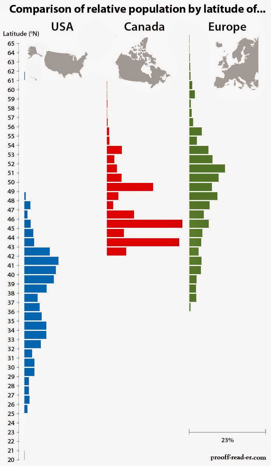 Infographics Comparison of relative population by latitude of USA, Canada & Europe June 27, 2015 Alex Related Posts:Comparing the latitude of Europe and AmericaPercentage who have not Consumed Alcohol in the last…USA Climate Comparison MapsDifferences between the United States and Europe mappedThe Hidden Parallels: Northern and Southern…The Best World Map Posters In 2025World population distribution and density by…Spain's Latitude Twins: Comparing Climates Across the World
