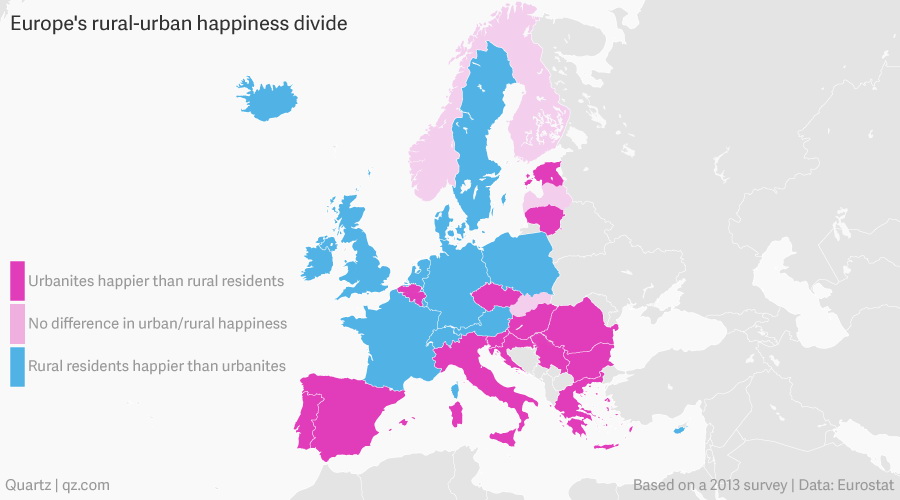 Happiness Europe’s rural-urban happiness divide April 13, 2016 Alex Related Posts:The Price of HappinessThe World’s Happiest Countries (2015 - 2023)World Happiness Report (2017)The happiest countries in the world (2013 - 2020)The Intrinsic Value of DemocracyYellow vs Blue Europe: Which Countries Are Happier…Where are Americans the Happiest?Does Your Country Live, Laugh, Love?