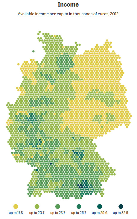 In the early euphoria following the fall of the Berlin Wall in 1989, Germany moved quickly to erase the scars of its Cold War division. But East Germany’s legacy remains visible in statistics.