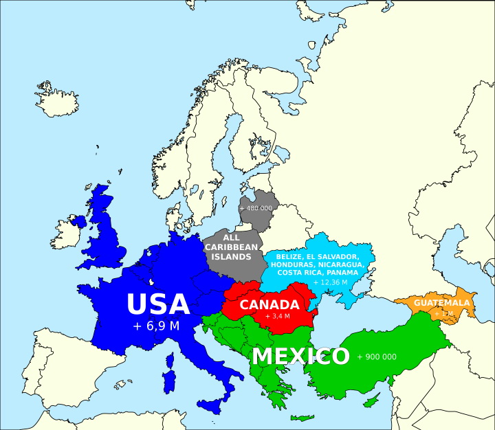 Population How The Population of North America Fits Into Europe June 23, 2015 Alex Related Posts:How United States population fits into AfricaDifferences between the United States and Europe mappedContinents and countries split into areas of equal…Atlas of satirical maps of EuropeHistorical Maps of the United States and North AmericaGeography facts about AmericasThe World's Forests MappedWhich countries get the most paid vacation days?