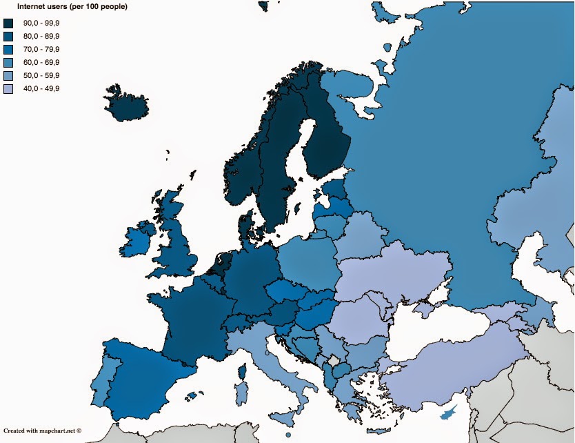 Internet Internet Users in Europe April 6, 2015 Alex The number of internet users in the Scandinavian countries has greatly outpaced the europe by comparison. Related Posts:Official gems, minerals and rocks symbols of every…Mapped: The Countries Most Addicted To Screen TimeScandinavians in AmericaWhat Jobs are People in Different Countries Looking For?What Mobile Brand Dominates the Market Share in Each…Maps that explain the internetThe world's top 10 most populous cities from 100 AD to todayThe Price of Sex around the World Mapped
