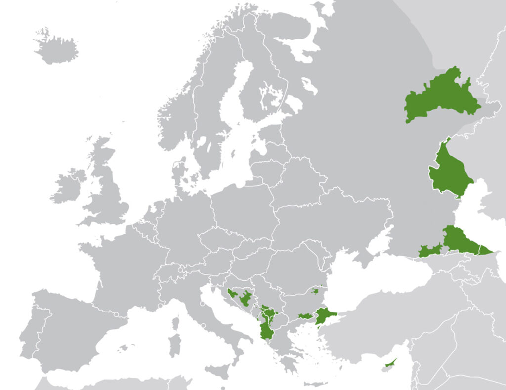 Today, Europe’s Muslim-majority regions are Turkey, Kosovo, Northern Cyprus, and Albania, with Muslim pluralities in parts of Bosnia and Herzegovina, North Macedonia, and Montenegro, as well as in several Russian regions in the North Caucasus and along the Volga (such as Tatarstan) and in the European part of Kazakhstan.