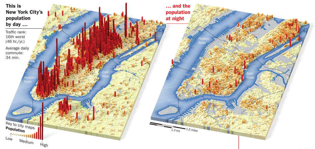 Population New York City’s population by day and night July 5, 2015 Alex Traffic rank: 16th worst (46 hr./yr.) Average daily commute: 34 min. Related Posts:The 30 Best Map-Based Strategy Board GamesThe Best Editions of Monopoly Board GameThe worst value tourists attractions, according to…The US and UK Cities With the Worst Co-WorkersThe Oldest Cities in the U.S. MappedOther popular board gamesThe U.S. states and cities with the worst driversU.S. Commuters mapped