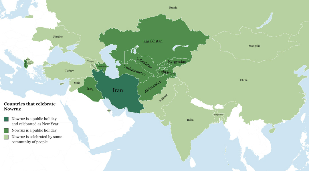 I was a bit surprised to see Albania included. They have celebrated Nevruz, which is their spelling, as a holiday since 1996. Bektashi Sufis (Muslim Sufi Order in Albania) introduced it during Ottoman rule. The holiday marks both the start of spring and Ali ibn Abi Talib’s birthday.