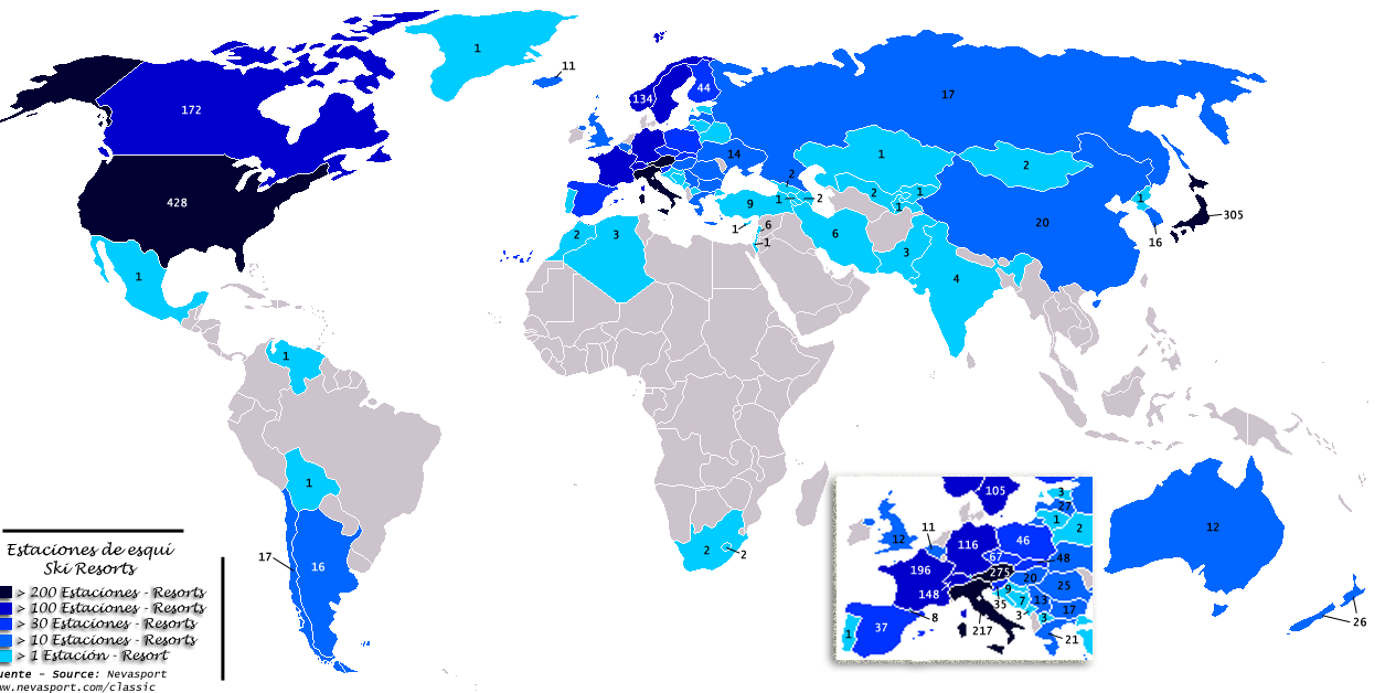 Interactive mapsSportWorld Number of ski resorts by country August 6, 2016 Alex Related Posts:The Alps in mapsSki jumping national recordsCool cartography: the art of mapmakingThe Type of Business Every Country Wants to StartWhere Have All the Rivers Gone? The Disappearing…Billionaire Islands Compared on the MapEvery recorded meteorite to have struck Earth mappedThe Wettest City in Every Country