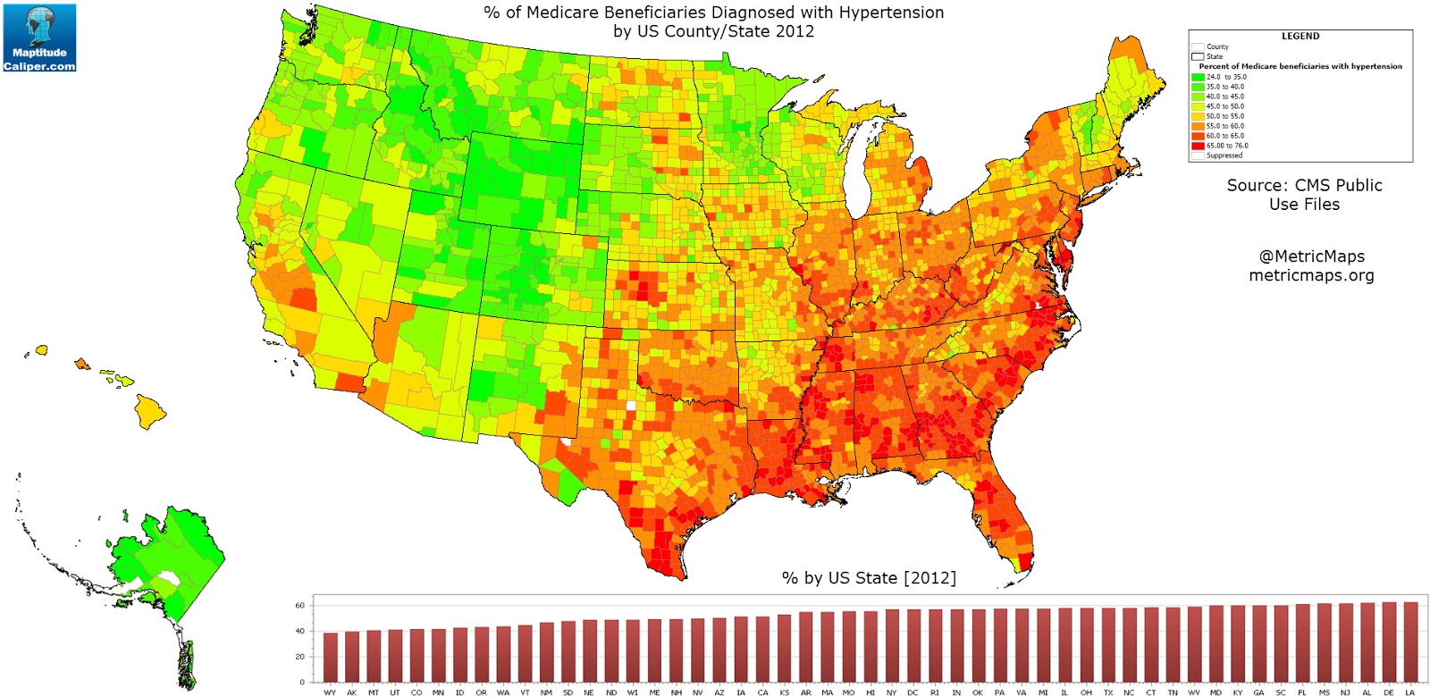 Mapping Health % of People on Medicare Diagnosed with Hypertension by US County / State June 23, 2015 Alex Related Posts:Medicare costs per capita by U.S. countyThe Most Isolated City in Each U.S. State MappedU.S. Non-Hispanic White Population by County (1990 - 2017)The Wealthiest and Poorest County in Every U.S. StateMedicare spending vs private Insurance spending per…Life expectancy in the United StatesMap showing countries which since independence have…Geography Facts About the U.S. Counties