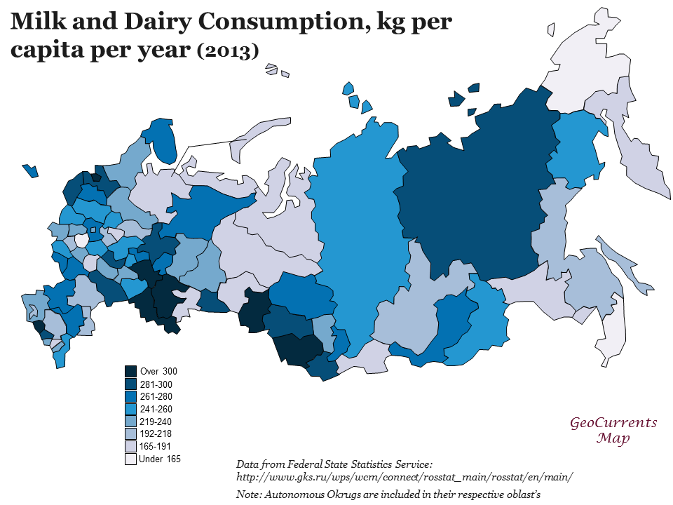 Milk & Dairy consumption, kg per capita per year