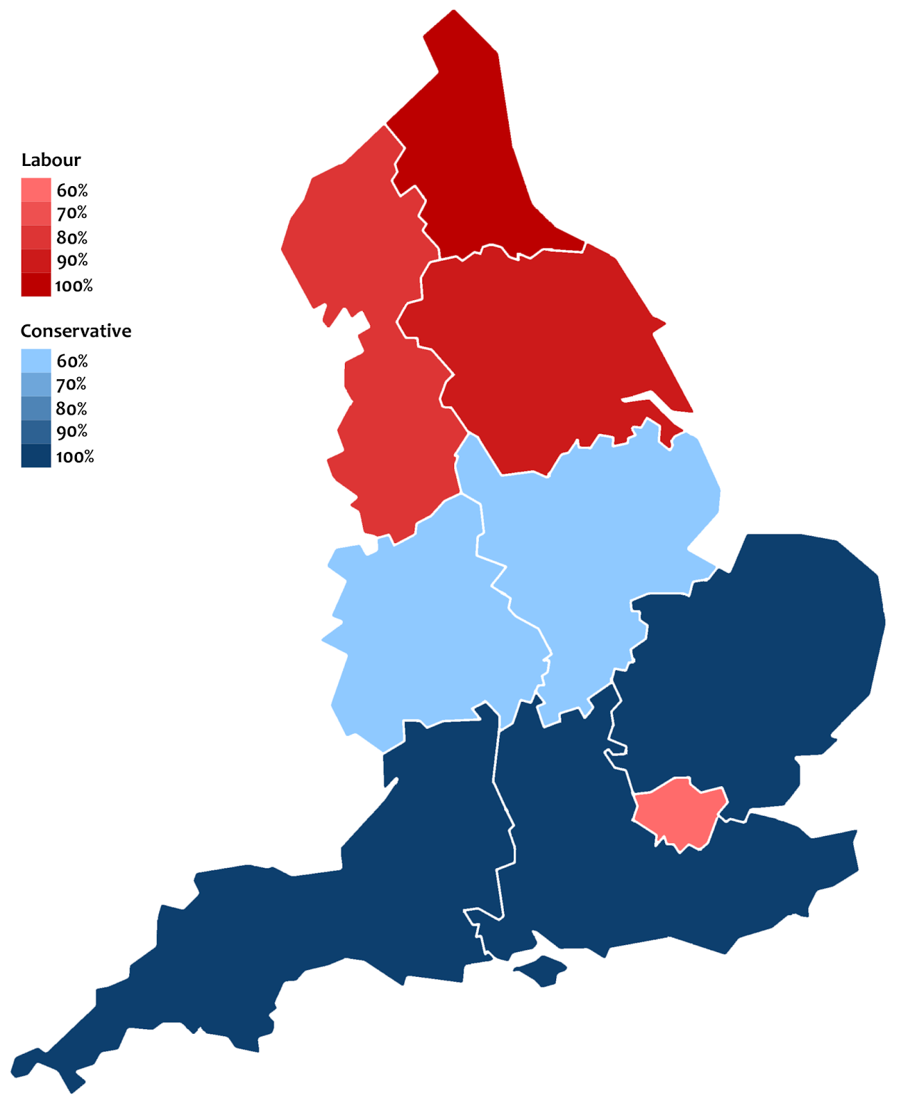 Political maps Political leanings of English Regions in the last 10 General Elections August 10, 2016 Alex Related Posts:English Accents and Dialects Around The WorldThe Most Spoken Languages in American States and…English Proficiency in EuropeEnglish language in the worldHow English Proficiency Changed Worldwide: 2015 vs 2023Swing States: Mapping the Political Pendulum of AmericaLanguages of the British Isles throughout historyThe U.S. Presidential Voting History Mapped