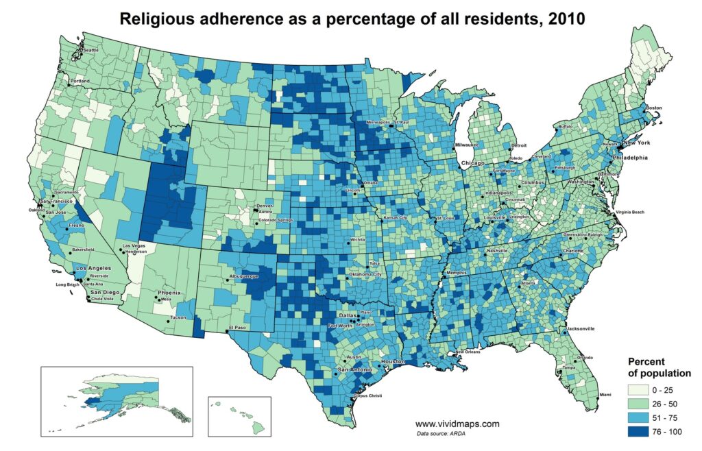 Interesting how religiosity comes and goes, and how the South wasn’t particularly religious until present time.