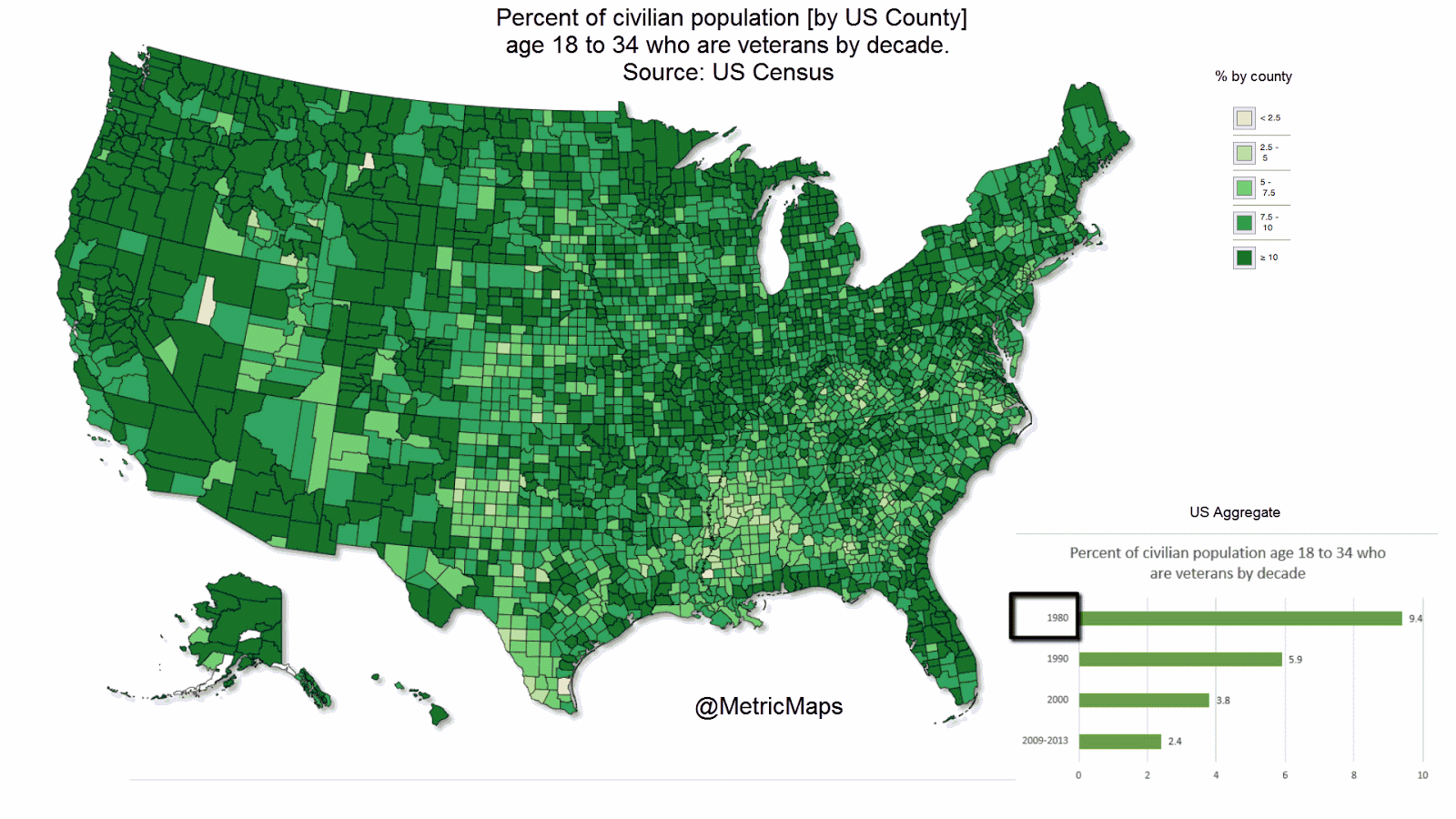 World The shrinking of America’s veteran population June 4, 2016 Alex Related posts: – Where do the oldest Americans live? – Leading group, Ages 85+, by U.S. county Related Posts:The Oldest Cities in the U.S. MappedThe World's Forests MappedThe Oldest Business in Every Country in the worldThe Oldest Building in Each U.S. State MappedMap of the largest Hispanic ethnic group in each U.S. countyThe Most Common Ethnicity of White Americans in…The 30 Best Map-Based Strategy Board GamesLeading minority group by U.S. county