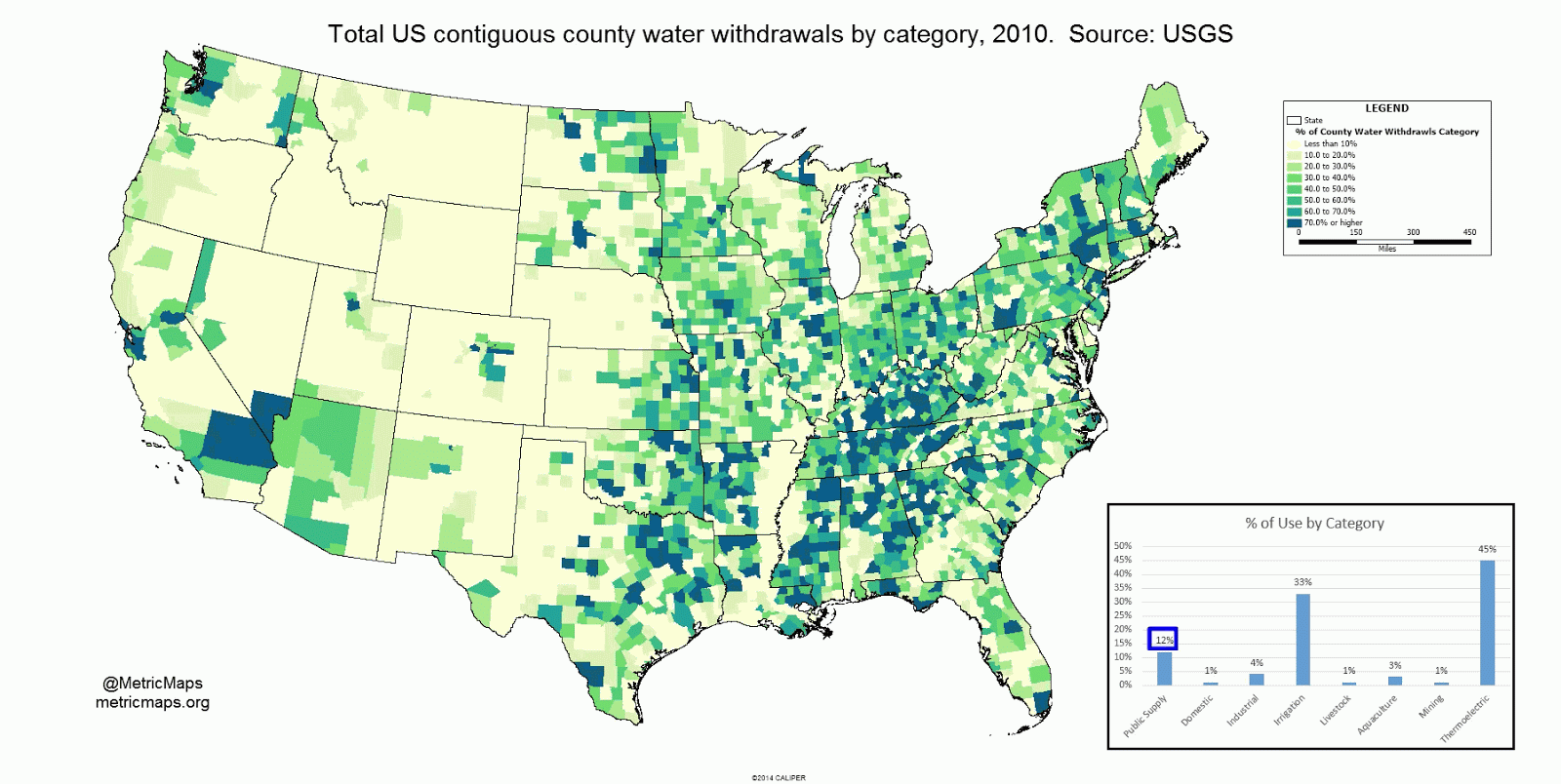 Water withdrawals in 4 States (California, Texas, Idaho, Florida) accounted for more than 1/4 of all fresh and saline water withdrawn in the U.S.