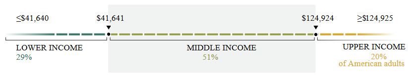 The share of adults in the upper-income tier was highest in Midland, TX (37%) and lowest in Laredo, TX, McAllen-Edinburg-Mission, TX, Las Cruces, NM and Visalia-Porterville, CA (9%).